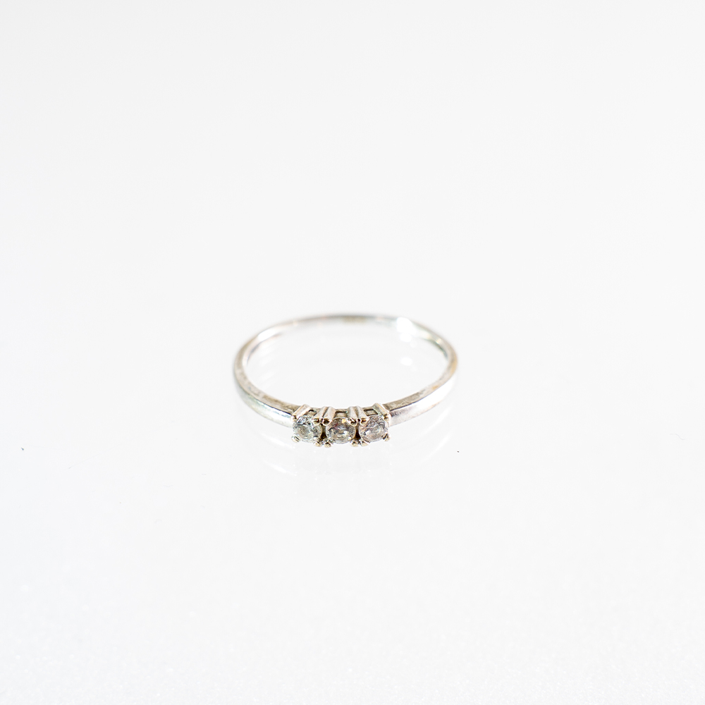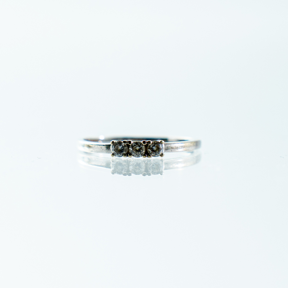 DESCRIZIONE: Anellino modello trilogy in oro bianco 18 kt montante tre piccoli diamanti per ct. tot. 0,15 (G color).