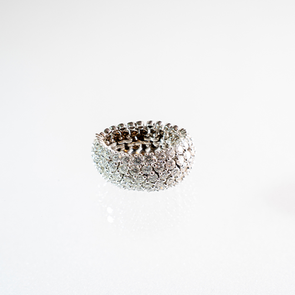 DESCRIZIONE: Anello a fascia snodata in oro bianco 18 kt montante diamanti tot.ct. 3,50 (E color).